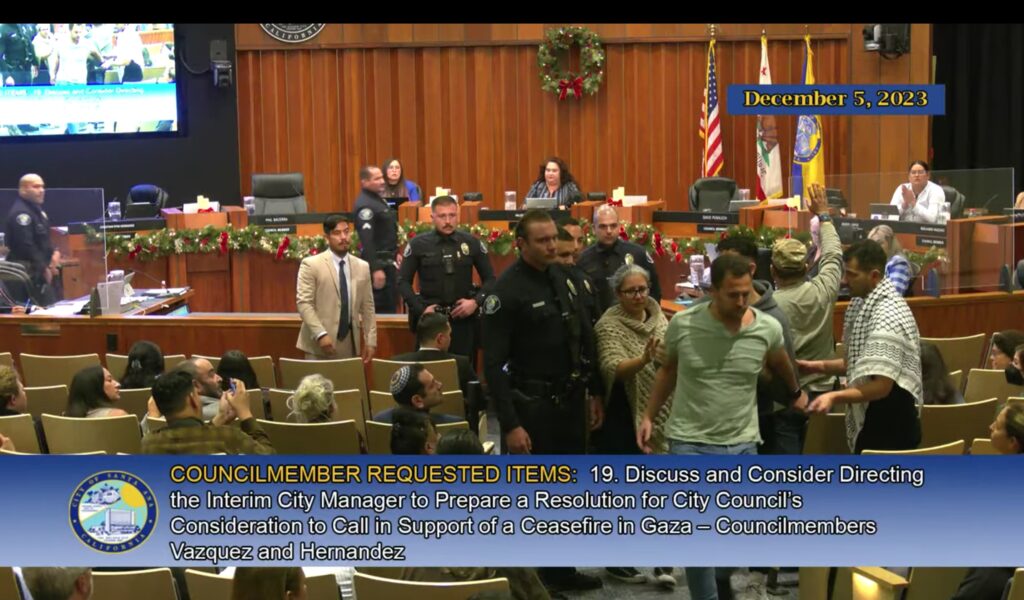 The meeting unfolded amid disruptions from both sides as pro-Palestine and pro-Israel speakers clashed with each other. This prompted Mayor Amezcua to instruct police to remove disruptive attendees.